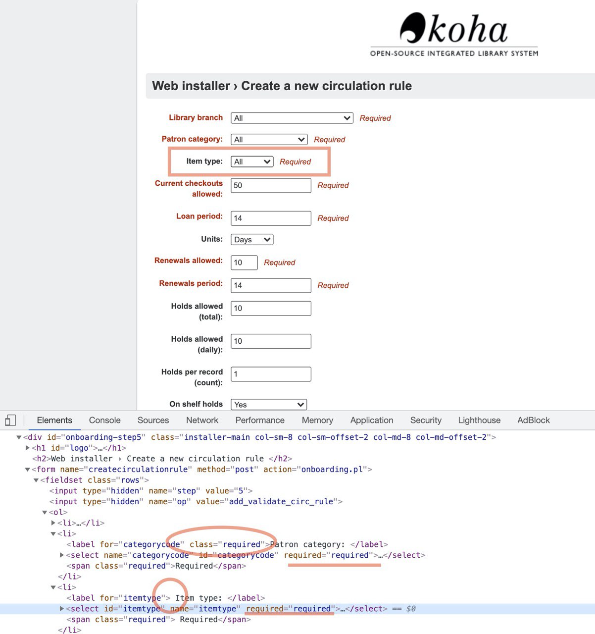Screenshot of missing 'required' class