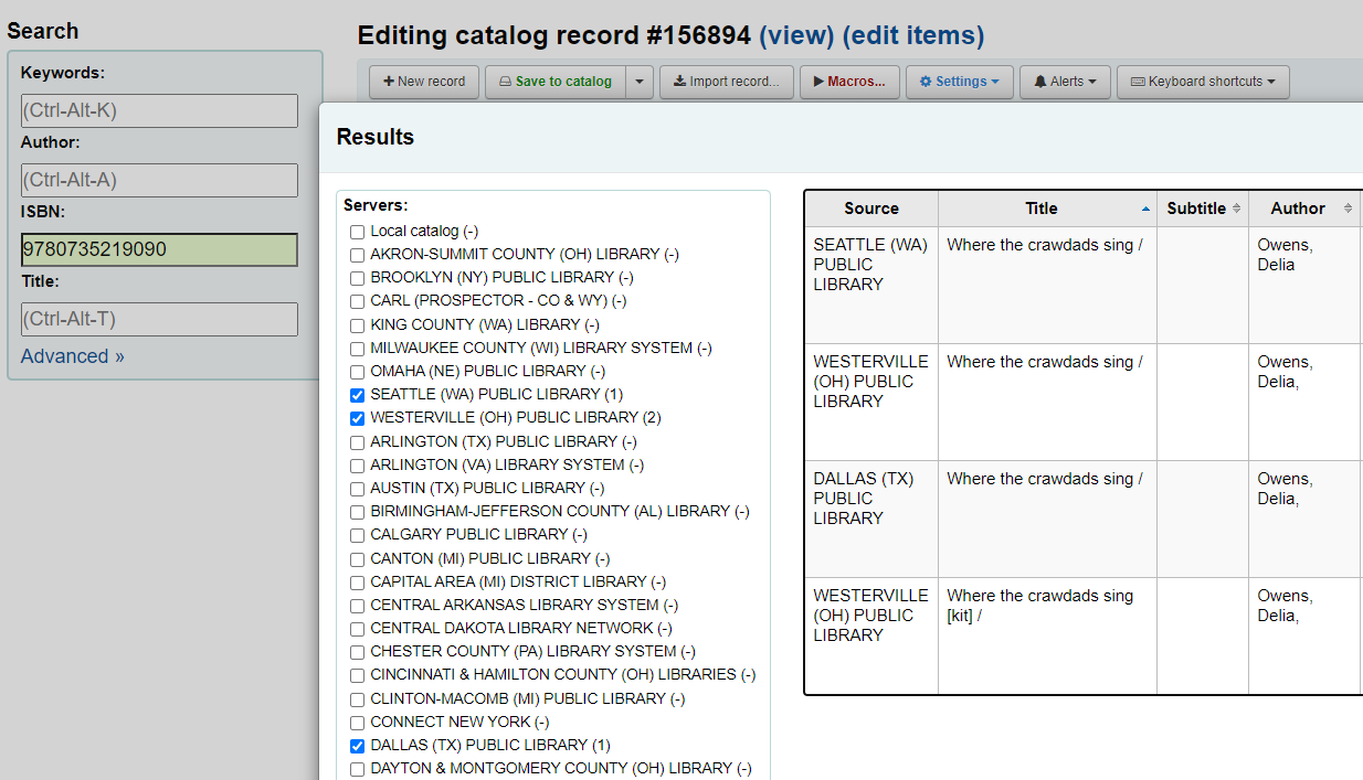 Restore temporary selection of Z39.50 targets throughout multiple searches
