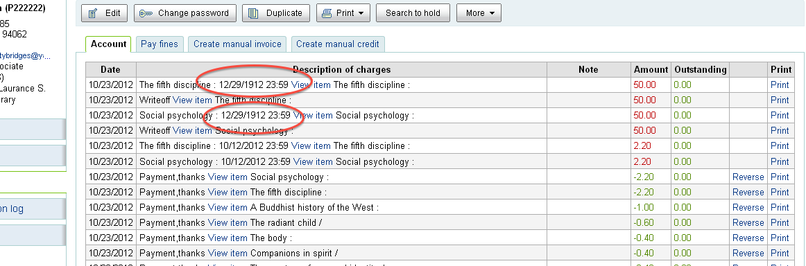 Due Date set to 100 years ago.