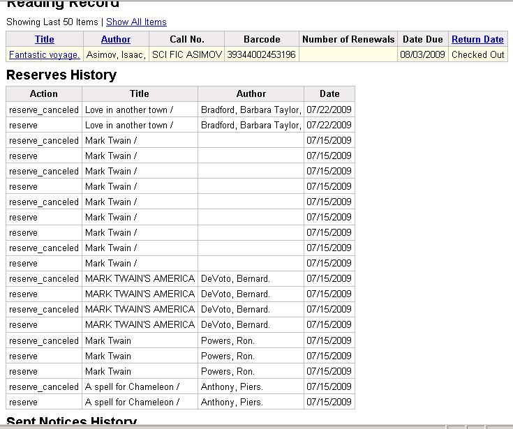 borrower history screenshot