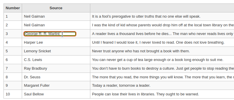 Editable quotes table (step 4)