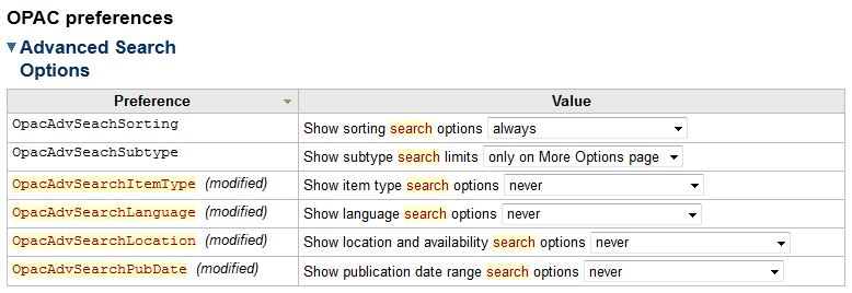Adding system preferences to control the visibility of the content on the Advanced Search page