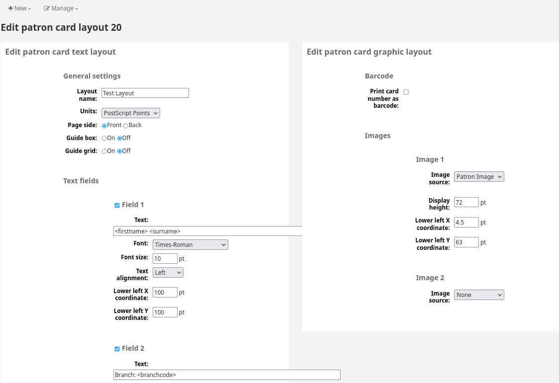 Screenshot - patron card layout form