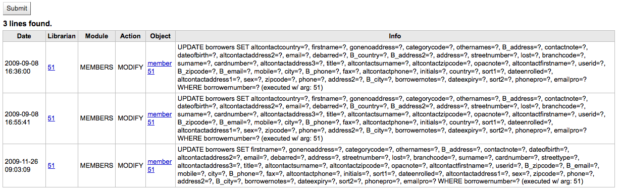 More detailed patron record changes log