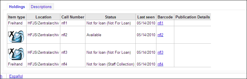 item status for "not for loan" by item type / item is different