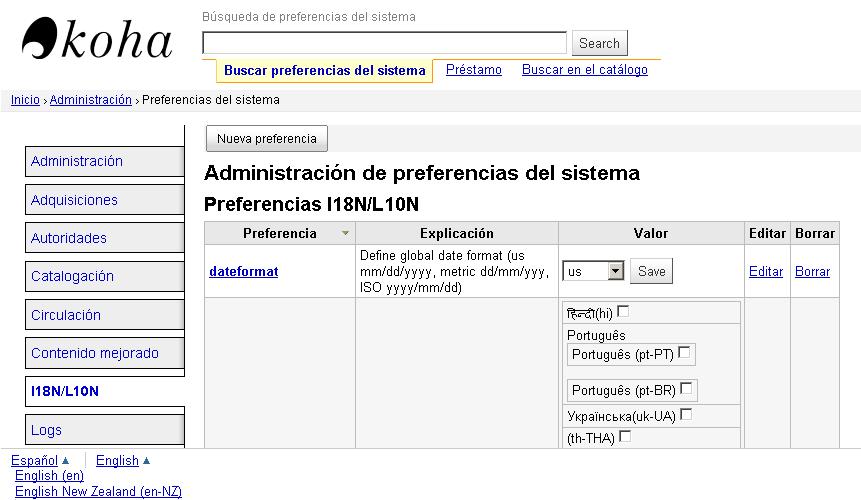 language menu error at the bottom of the intranet