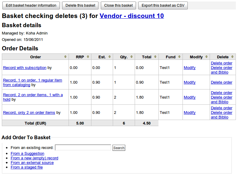 screenshot of basket with test cases