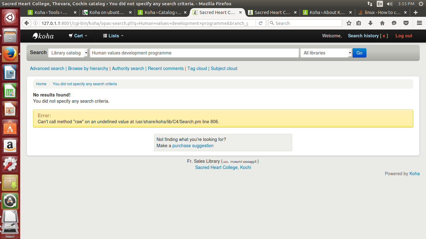 Can't call method "raw" on an undefined value at C4/Search.pm line 806
