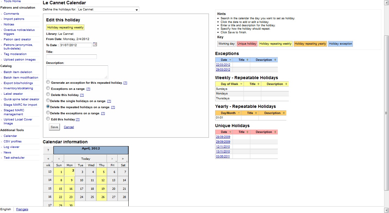ability to edit a range of holidays