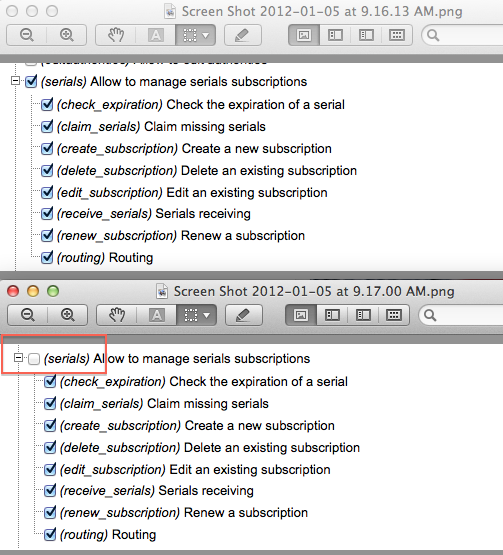 serials permissions