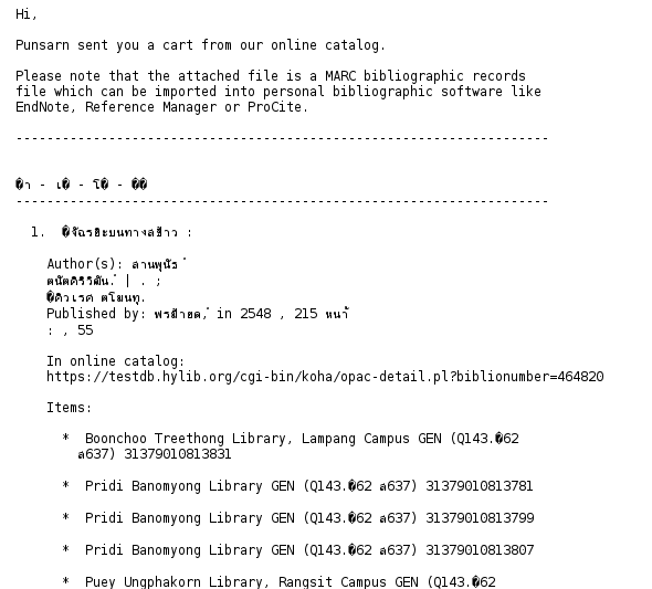 | Product: | Koha | Reporter: | Pongtawat <pongtawat> |