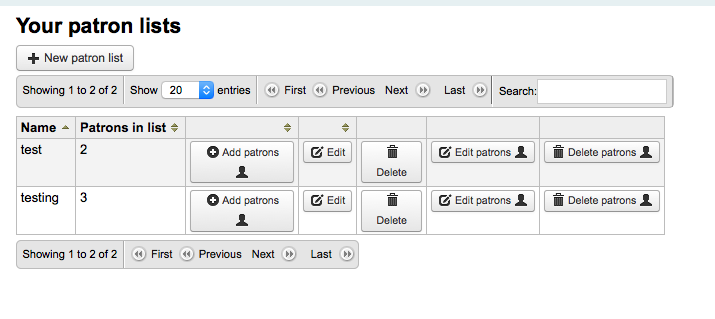 Maybe the button actions could be moved into a single pop-up menu like we did with reports. I like that idea. Created attachment 47878 [details] [review] Bug 13778: Putting patron lists buttons into a dropdown menu To test: 1) Go to Tools -> Patron lists 2) If there are no lists, confirm there is a message box saying 'There are no patron lists.' 3) Create a list if you do not already have one. 4) Confirm that in the 'Actions' drop down menu next to the list, the options to 'Add patrons', 'Edit', 'Delete', and 'Print patron cards' are all there and work as expected. Created attachment 47879 [details] [review] Bug 13778: Putting patron lists buttons into a dropdown menu To test: 1) Go to Tools -> Patron lists 2) If there are no lists, confirm there is a message box saying 'There are no patron lists.' 3) Create a list if you do not already have one. 4) Confirm that in the 'Actions' drop down menu next to the list, the options to 'Add patrons', 'Edit', 'Delete', and 'Print patron cards' are all there and work as expected. Sponsored-by: Catalyst IT Created attachment 47883 [details] [review] Bug 13778: Putting patron lists buttons into a dropdown menu To test: 1) Go to Tools -> Patron lists 2) If there are no lists, confirm there is a message box saying 'There are no patron lists.' 3) Create a list if you do not already have one. 4) Confirm that in the 'Actions' drop down menu next to the list, the options to 'Add patrons', 'Edit', 'Delete', and 'Print patron cards' are all there and work as expected. Sponsored-by: Catalyst IT Signed-off-by: Marc Véron <veron@veron.ch> Created attachment 47984 [details] [review] Bug 13778: Putting patron lists buttons into a dropdown menu To test: 1) Go to Tools -> Patron lists 2) If there are no lists, confirm there is a message box saying 'There are no patron lists.' 3) Create a list if you do not already have one. 4) Confirm that in the 'Actions' drop down menu next to the list, the options to 'Add patrons', 'Edit', 'Delete', and 'Print patron cards' are all there and work as expected. Sponsored-by: Catalyst IT Signed-off-by: Marc Véron <veron@veron.ch> Signed-off-by: Kyle M Hall <kyle@bywatersolutions.com> Created attachment 47998 [details] [review] Bug 13778: Putting patron lists buttons into a dropdown menu To test: 1) Go to Tools -> Patron lists 2) If there are no lists, confirm there is a message box saying 'There are no patron lists.' 3) Create a list if you do not already have one. 4) Confirm that in the 'Actions' drop down menu next to the list, the options to 'Add patrons', 'Edit', 'Delete', and 'Print patron cards' are all there and work as expected. Sponsored-by: Catalyst IT Signed-off-by: Marc Véron <veron@veron.ch> Signed-off-by: Kyle M Hall <kyle@bywatersolutions.com> Signed-off-by: Jonathan Druart <jonathan.druart@bugs.koha-community.org> Created attachment 47999 [details] [review] Bug 13778: Only the last column is not sortable Signed-off-by: Jonathan Druart <jonathan.druart@bugs.koha-community.org> pushed to Master - Should be in the May 2016 release. Thanks! The initial issue was actually fixed by bug 15223. So this bug is an enhancement, severity changed. |