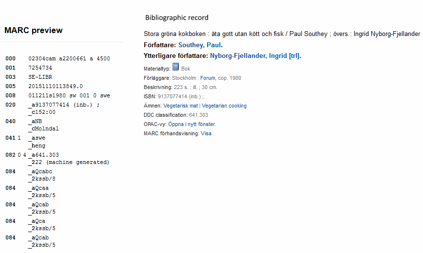 Created attachment 44796 [details] Marc preview and bibliographic record. 084 is shown in Marc but not on the bibliographic record. In Sweden we use field 084 in marc to store the classification code. In Koha the 084 field does not show on the bibliographic record. This pertains both the staff client and the opac. I tried to leave the XSLTDetailsDisplay-field blank in administration, but it's the same result.