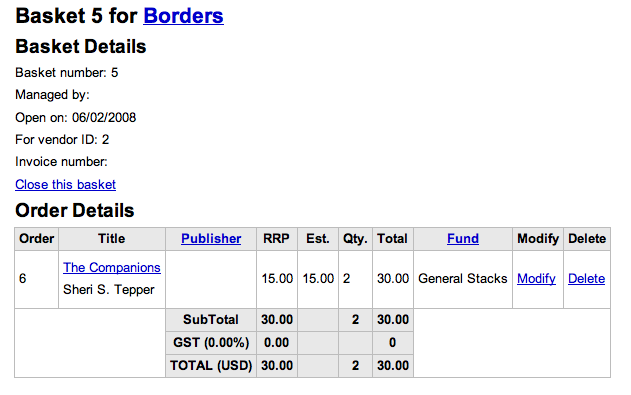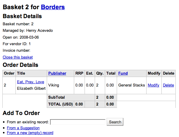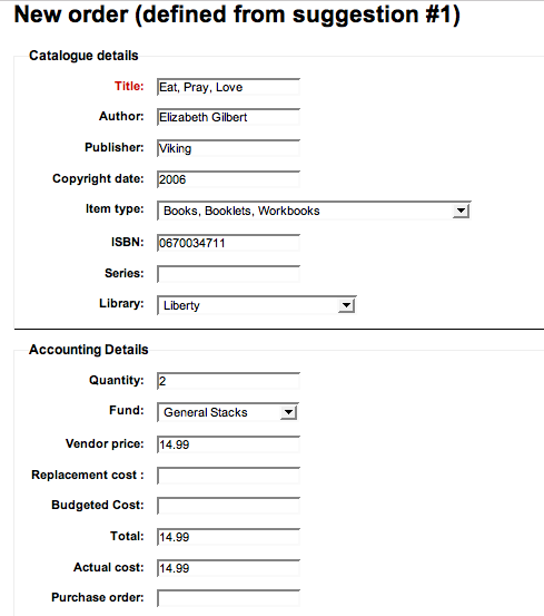 | Component: | Acquisitions | Assignee: | Chris Cormack <chris> |