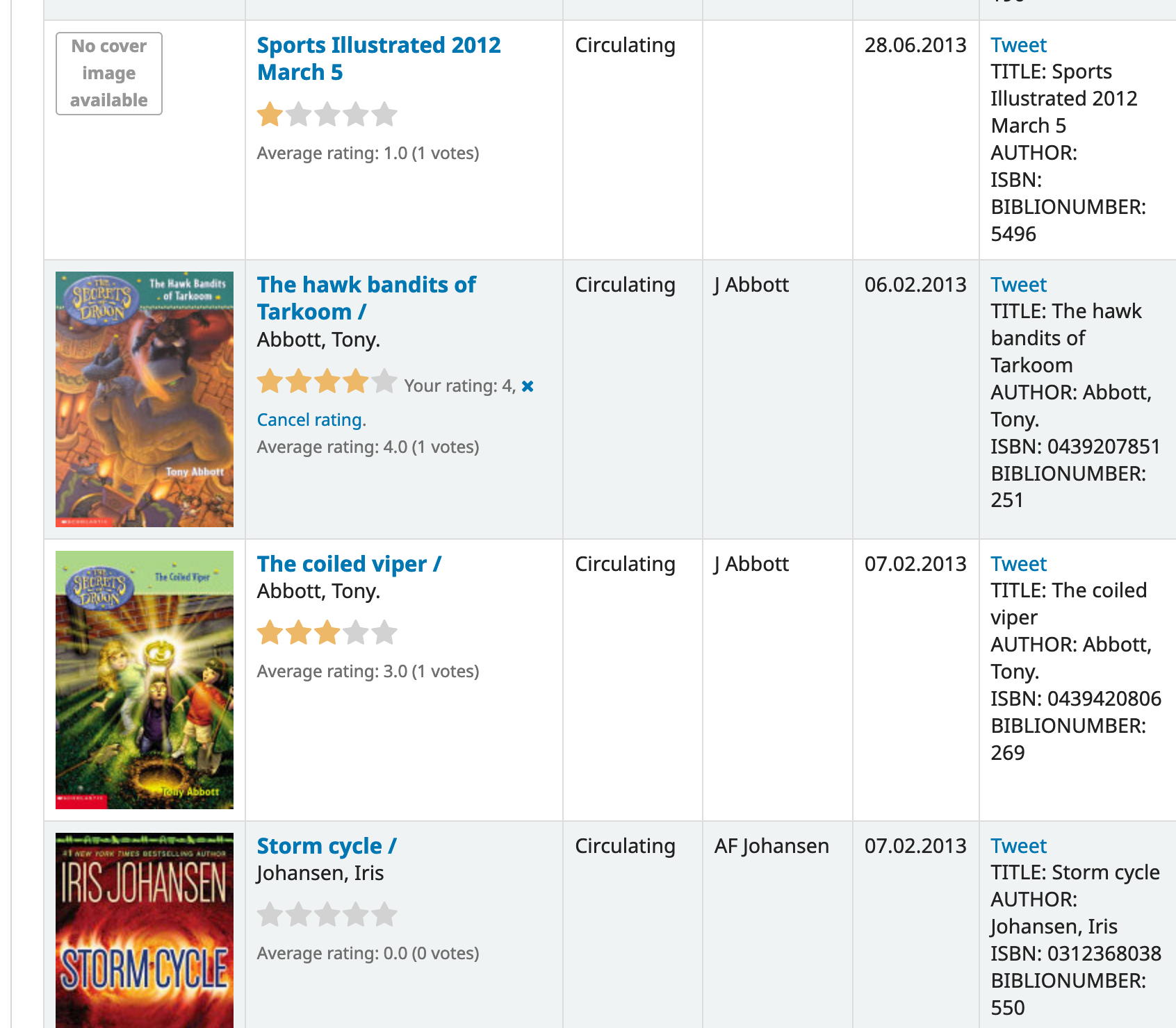 Screenshot of ratings on reading history page