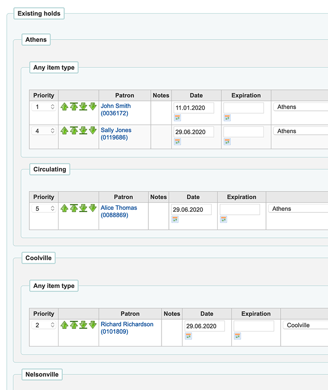 Created attachment 106403 [details] [review] Bug 25892: Clarify the visual hierarchy of holds by branch and itemtype This patch makes minor changes to the markup of the holds list to make the page hierarchy clearer when holds are grouped by branch and itemtype. Test plan: - Enable the AllowHoldItemTypeSelection system preference. - Locate a record in the catalog and place multiple holds: - Holds at different branches - Holds with different itemtypes selected - View the holds page with various values of the HoldsSplitQueue preference enabled: - nothing - pickup library - hold itemtype - pickup library & itemtype In each case verify that the interface works well. Created attachment 106412 [details] [review] Bug 25892: Clarify the visual hierarchy of holds by branch and itemtype This patch makes minor changes to the markup of the holds list to make the page hierarchy clearer when holds are grouped by branch and itemtype. Test plan: - Enable the AllowHoldItemTypeSelection system preference. - Locate a record in the catalog and place multiple holds: - Holds at different branches - Holds with different itemtypes selected - View the holds page with various values of the HoldsSplitQueue preference enabled: - nothing - pickup library - hold itemtype - pickup library & itemtype In each case verify that the interface works well. Signed-off-by: Christopher Brannon <cbrannon@cdalibrary.org> Works as outlined. Everything looks good. Created attachment 106488 [details] [review] Bug 25892: Clarify the visual hierarchy of holds by branch and itemtype This patch makes minor changes to the markup of the holds list to make the page hierarchy clearer when holds are grouped by branch and itemtype. Test plan: - Enable the AllowHoldItemTypeSelection system preference. - Locate a record in the catalog and place multiple holds: - Holds at different branches - Holds with different itemtypes selected - View the holds page with various values of the HoldsSplitQueue preference enabled: - nothing - pickup library - hold itemtype - pickup library & itemtype In each case verify that the interface works well. Signed-off-by: Christopher Brannon <cbrannon@cdalibrary.org> Signed-off-by: Emmi Takkinen <emmi.takkinen@outlook.com> Created attachment 106530 [details] [review] Bug 25892: Clarify the visual hierarchy of holds by branch and itemtype This patch makes minor changes to the markup of the holds list to make the page hierarchy clearer when holds are grouped by branch and itemtype. Test plan: - Enable the AllowHoldItemTypeSelection system preference. - Locate a record in the catalog and place multiple holds: - Holds at different branches - Holds with different itemtypes selected - View the holds page with various values of the HoldsSplitQueue preference enabled: - nothing - pickup library - hold itemtype - pickup library & itemtype In each case verify that the interface works well. Signed-off-by: Christopher Brannon <cbrannon@cdalibrary.org> Signed-off-by: Emmi Takkinen <emmi.takkinen@outlook.com> Signed-off-by: Katrin Fischer <katrin.fischer.83@web.de> Pushed to master for 20.11, thanks to everybody involved! not backporting enhancement to 20.05.x series |