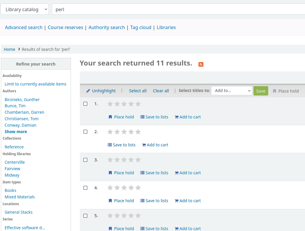 No details for a record are shown in the OPAC search results.