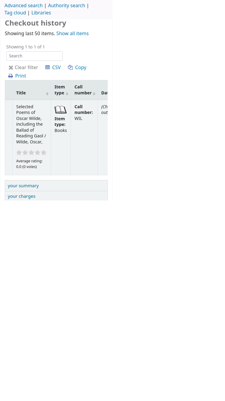 Created attachment 138180 [details] Screenshot of checkout history in mobile view on Firefox The checkout history table on mobile is large and there doesn't seem to be a way to scroll right. When on mobile, the current checkouts are not in a table, maybe the same could be done with the checkout history? To test: 1) Make sure you have checkouts in your account 2) Log into the OPAC --> In 'Your summary' current checkouts are in a table 3) Go to 'You checkout history' --> Current and previous checkouts are in a table 4) Switch to mobile view (in Firefox, Ctrl + Shift + M) --> Checkout history is still in a table and the last column is not entirely visible (depending on the content of the columns, I suppose) 5) Go to 'Your summary' --> Current checkouts are presented in list form instead of a table