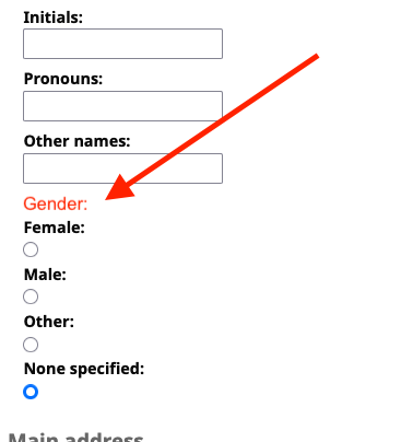 | Summary: | Self-registration form - field label missing for gender selection | ||