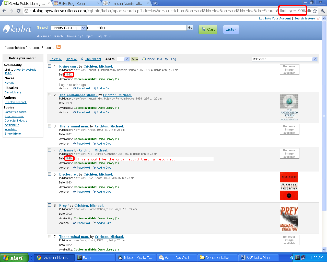 | Component: | Searching | Assignee: | Galen Charlton <gmcharlt> |