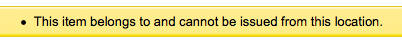 Created attachment 17557 [details] error See attached. When you have HomeOrHoldingBranch set to home library you get an error when you try to check the item out at another branch - this is good, but the error is missing a library name I think cause it's not a sentence: "This item belongs to and cannot be issued from this location." I think it should be : "This item belongs to HOMEBRANCH and cannot be issued from this location."