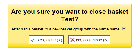 Created attachment 19039 [details] screenshot of dialog described in comment I think we are almost there, but there is one little thing I am still worried about: When I close the basket with the user that has not group_manage permission, I still get offered the yellow dialog on closing the basket that asks me if I want to create a basket group with the same name as the order and put my order in it. If you check the checkbox and save you go to an error page: Error: You do not have permission to access this page. Click to log out... I think ideally we should not have this happen, but remove that bit from the dialog.