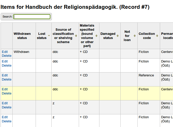For a biblio with a lot of items, it is not easy to find the one you want to edit. Datatables could help using a filter box.