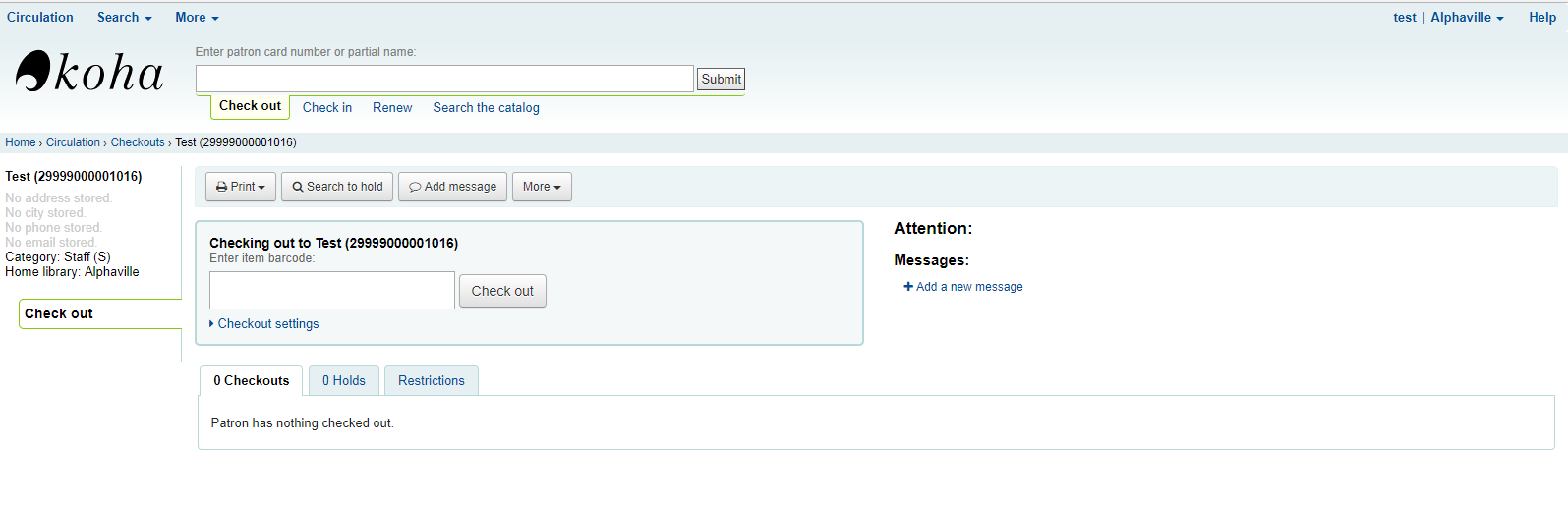When a borrower has those flags: -circulate -catalog -reserveforothers -borrow -updatecharges He can not make and check fines on a other borrower. He can make check in and check out but he has not a access to the fines tab. See video. http://communaute.koha.ccsr.qc.ca/wp-content/uploads/2013/09/flags.swf Thanks Marjorie