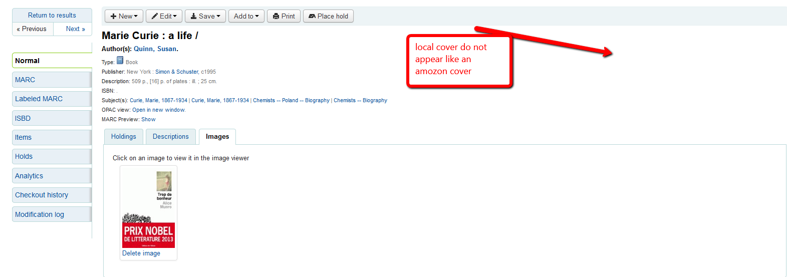 Hi, It's the same for a staff detail biblio (see attachment). Jquery code you proposed is just for a results list? is there a jquery code for detail biblio? Regards, Marjorie