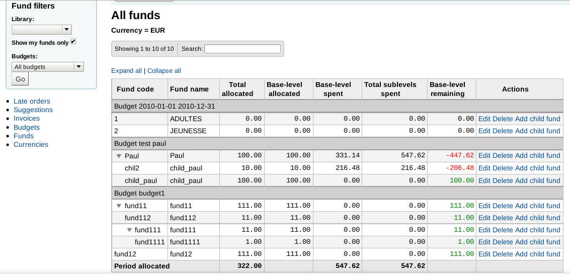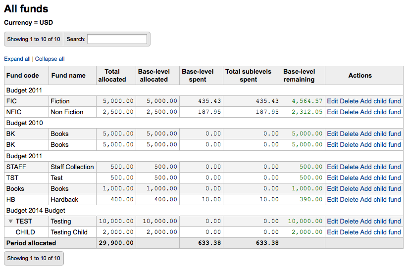 Created attachment 27764 [details] [review] [PASSED QA] Bug 11578: Improve the funds list view The current funds list view does not allow to search in the table and the ergonomics of the page is quite bad. This patch add the datatables plugin combined to the treetable plugin in order to offer a better view of the budgets/funds. Test plan: - Verify there is no regression on this page: try to add/modify/delete a fund and a budget. - Verify the funds hierarchie is correctly displayed. - Filter the funds using the branch and the budget filters. Signed-off-by: Martin Renvoize <martin.renvoize@ptfs-europe.com>