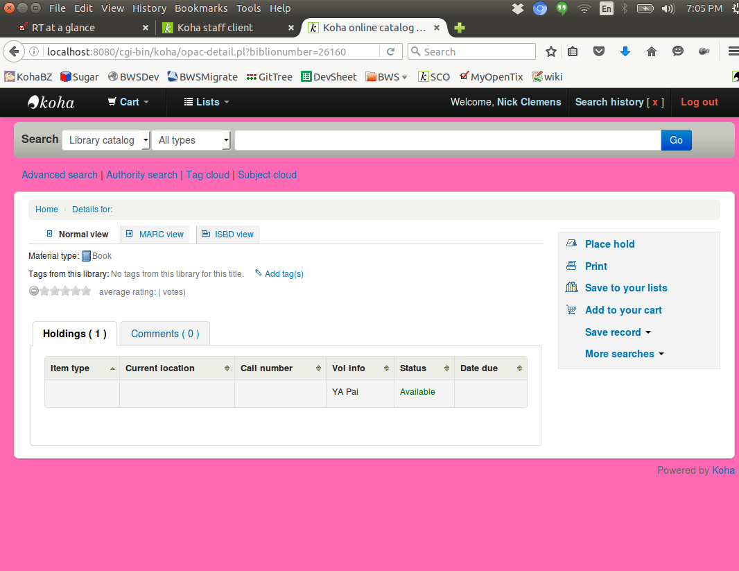 I think some ISBD bug which may have gotten pushed recently caused a bit of fun here. The GetISBDView function needs massive reworking. I believe I have the MARCView working.