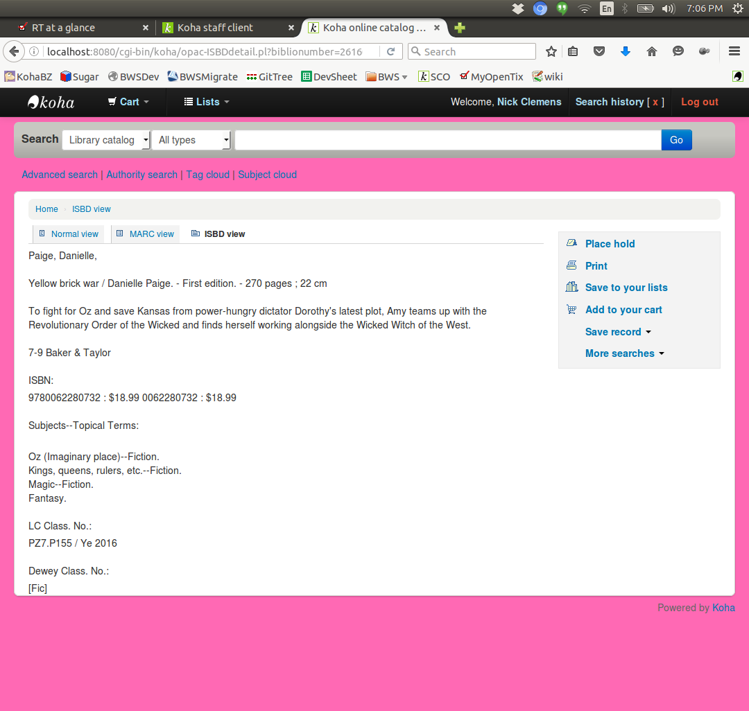 Comment on attachment 50486 [details] isbd after db and patch Confirmed and patched. This led to a GetISBDView refactor. It also led to the discovery of leakage in the carts and lists. Lists are mostly dealt with. Carts partially, but may not be noticeable.