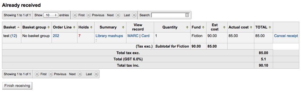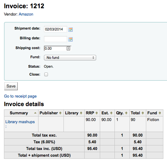 Created attachment 25027 [details] Step1-order See the series of attached screenshots. 1 - make sure that your tax rate is set on the vendor as 'not included' in the price. 2 - place an order for one item with the tax rate chosen 3 - close the basket 4 - receive the order 5 - note that on receipt the tax rate doesn't show, but it does show in the receipt summary 6 - click finish receiving 7 - note that the invoice does not have the right price with the tax included Tested on master