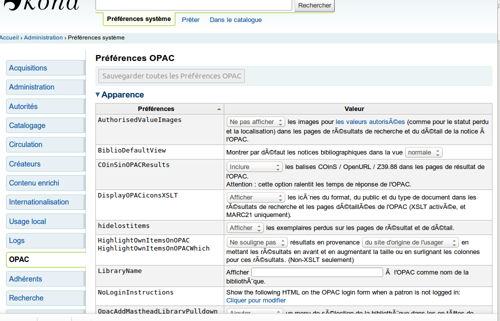 Created attachment 28317 [details] Screenshot of French OPAC tab in sys pref editor