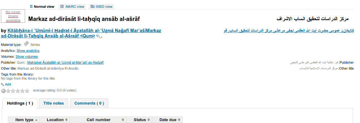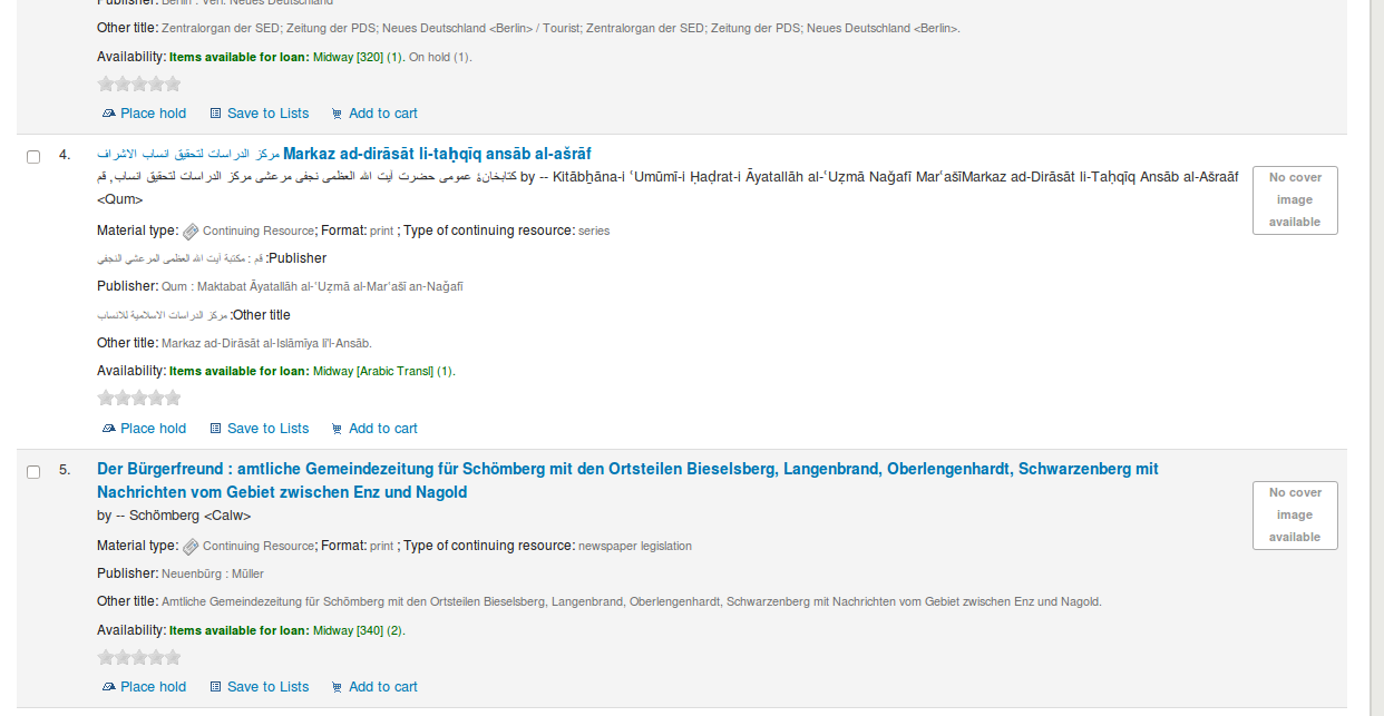 Created attachment 32133 [details] [review] [PASSED QA] Bug 12281: Display for records with RTL script in 880 in Boostrap This patch adds a missing CSS declaration to the Boostrap CSS file in order to fix the display for RTL script catalogued in tag 880. To test: - Catalog or import records using the 880 tag into your catalog - Compare the prog OPAC detail and rsult view with bootstrap - Apply patch - Verfiy now the display in bootstrap is the same as before in prog (and also in staff) Note: Some notes on how to catalog with 880 were added to the bug report. Signed-off-by: Aleisha Amohia <aleishaamohia@hotmail.com> Signed-off-by: Kyle M Hall <kyle@bywatersolutions.com>