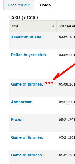 Created attachment 28436 [details] no subtitle info Right now we show the patrons what they have on hold in the OPAC, but without all the subfields associated with the title. So when you look at the attached image you'll see that it's all 'game of thrones' but in reality it's several different seasons - information that's in the 245$p and the 245$n.