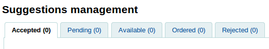 In Acquisitions > Suggestions, there is a tabs bar displaying by default five suggestion status. Two of them are improperly displayed as 'Unknown'.