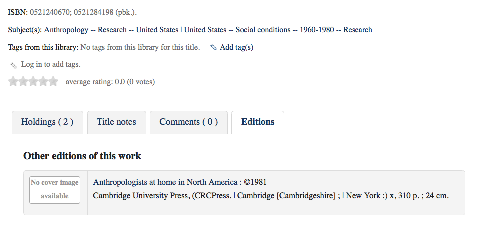 Created attachment 29549 [details] editions tab showing When a record has more than one ISBN it shows the Editions tab in the OPAC and it links to the exact same record. It's not a different edition.