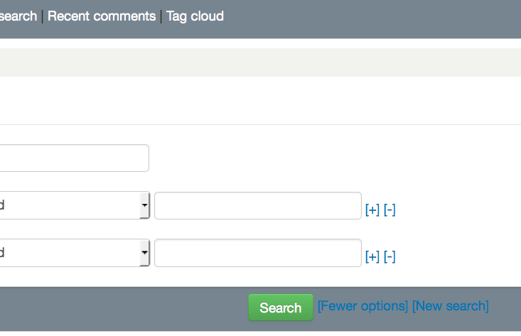 Created attachment 30065 [details] [review] proposed patch I have added bootstrap classes to the links, and made them 'btn-default' which means they will appear grey (and less prominent than "Search". I have re-compiled the LESS, and have that in the patch too.