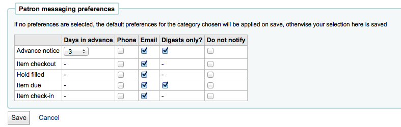 Created attachment 30582 [details] Patron Messaging Preferences. Under the patron messaging preferences. If a patron has selected BOTH Email and Digest only for advance notice and item due, the notices are not being sent.