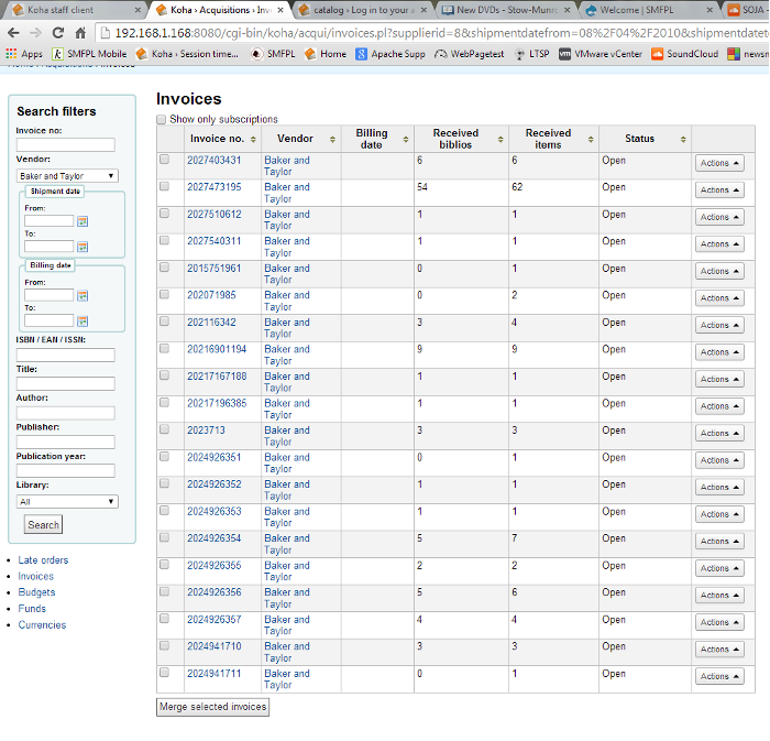 Created attachment 30791 [details] Invoice table truncated to 20 results A five-year invoice search on our biggest vendor only returns 20 results, no way to see the other invoices that I can find. Pagination is missing, table is truncated.
