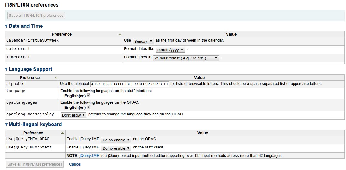 Created attachment 31130 [details] Screenshot of sub-sectioned I18N/L10N syspref The present 7 syspref under I18N / L10N are better sub-grouped under: Date and Time: CalendarFirstDayOfWeek, dateformat, TimeFormat; Language Support: alphabet, language, opaclanguages, opaclanguagesdisplay