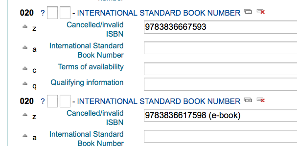 I am still getting a ";" if a field with 020$a is followed by a field with 020$z Adding another field with 020$a does not add a doubled semicolon, and neither does a second 020$z