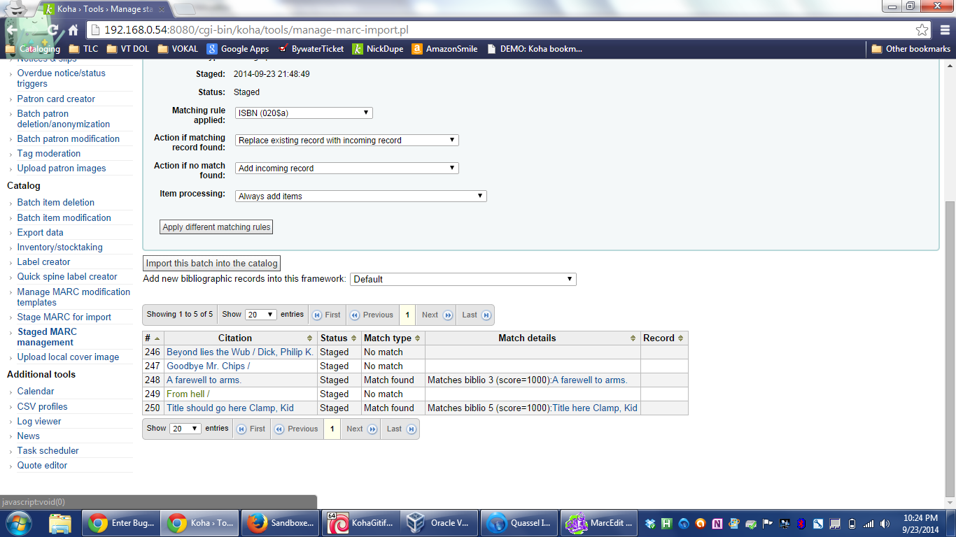 Created attachment 31848 [details] Screenshot of import and target On the "Managed staged MARC records" screen in both 3.16.x and Master using both Firefox and chrome I am getting an error when trying to view the source MARC for imported records, all links are coming up with target "javascript:void(0)" Checking out 3.14.x the links are normal I tested on a VM Debian Wheezy MARC21 and recreated on Biblibre sandbox 7 with master, MARC21 You can see the link target at the bottom of the screenshot