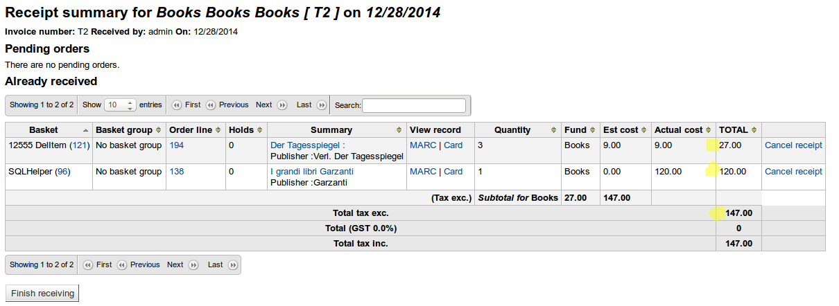 Created attachment 34759 [details] invoice - master Hi Jonathan, I hope I applied all the dependencies correctly: 12896 12969 13001 13320 I see a difference in the total, the actual cost seems not to be used for the total amount, I am attaching 2 screenshots - one for master and one with the patches applied.
