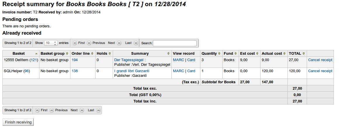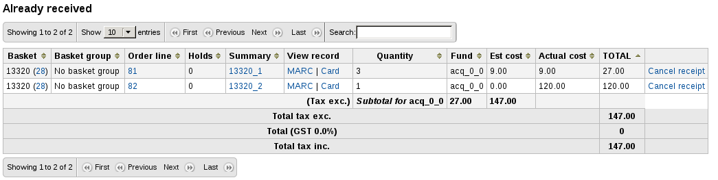 Created attachment 34033 [details] [review] Bug 13320: Fix "Tax inc." vs "Tax exc." The parcel page always displayes "Tax exc." even when values don't include taxes. Test plan: On the parcel page, verify that the string "Tax *" is correct. This appears in the already received order table.