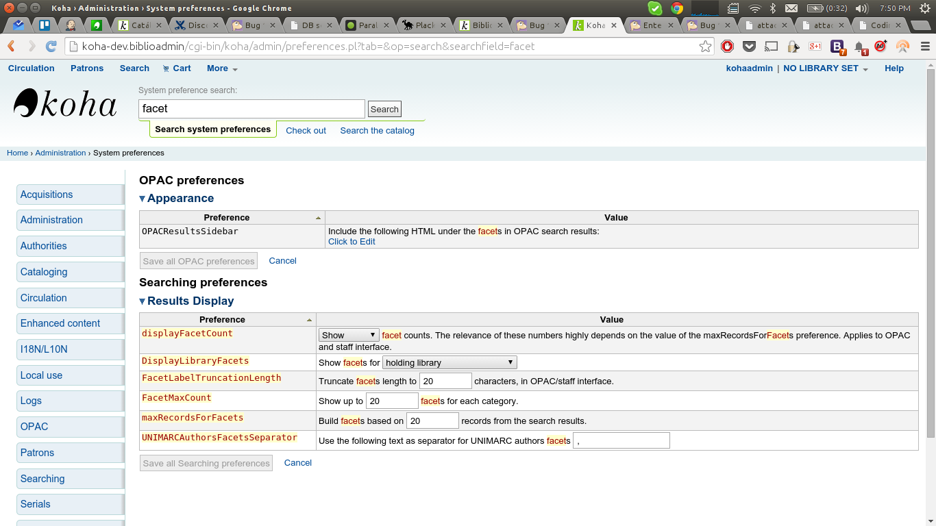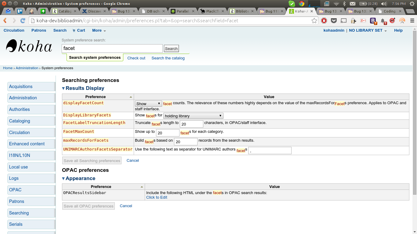 To reproduce: - Do a syspref search, for example 'facet'. => FAIL: Some highlighted occurences of 'facet' have styling problems, check the attached screenshots. Note: Firefox seems to render it properly, this is just in Chrome.