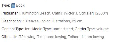 Never mind, I fixed it so they appear inline. -Winona (In reply to Winona Salesky from comment #6) > Created attachment 36920 [details] [review] [review] > Updates 336, 337 and 338 to the full displays in the staff and OPAC (In reply to Winona Salesky from comment #5) > I think some css work will need to be done to get them to display inline? Or > if necessary, I can change the output in the xslt. > > > (In reply to Winona Salesky from comment #4) > > Created attachment 36919 [details] [review] [review] [review] > > Add fields 336, 337 and 338 to the full displays in the staff