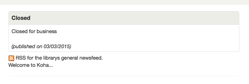 Created attachment 36387 [details] display of rss It looks like the RSS feed for the news items could use a bit of styling because right now it is right up against the main body content and that is confusing. I'd say the icon should be at the top of the news on the right or in the opac footer instead of right below the news.