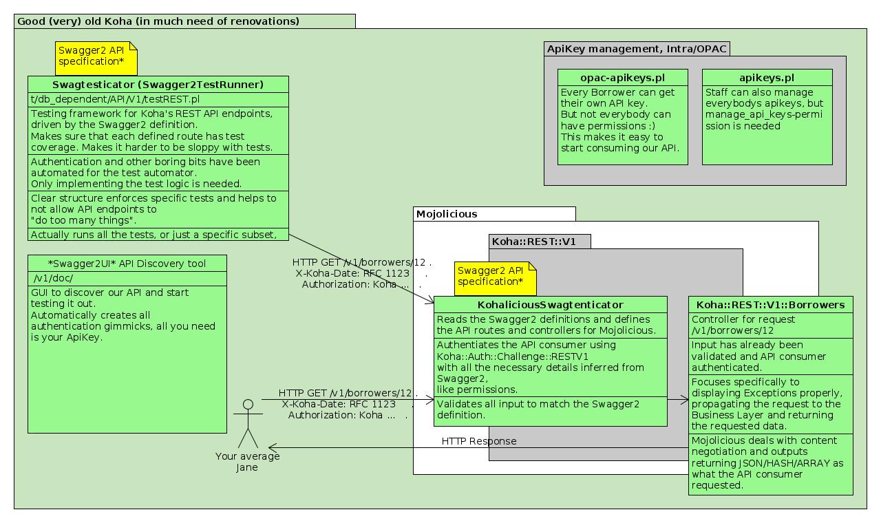 Just a reminder before I scurry off again. We also need to solve how to use Etags to prevent mid-air collissions when modifying DB-objects. This is currently a BIG issue in Koha and causes very hard to track and understand issues. Getting it solved using the new REST API would be super awesome and 100% inline (actually a REQUIREMENT) with the REST architecture.